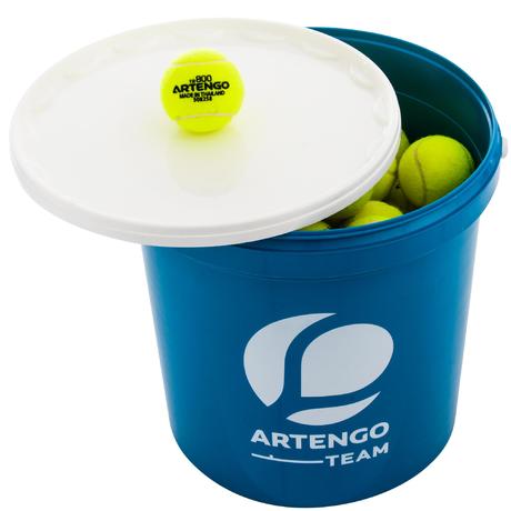 Balde de bolas de ténis para treinadores. Resistente e prático de utilizar graças à pega e à tampa.