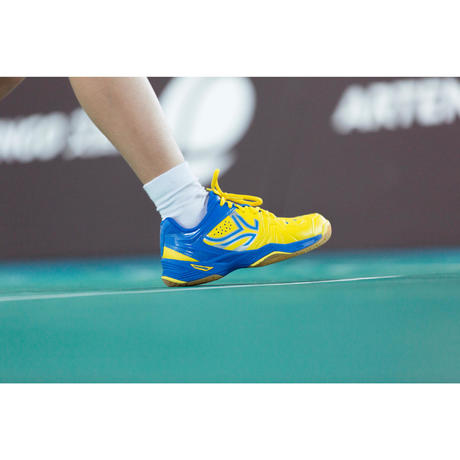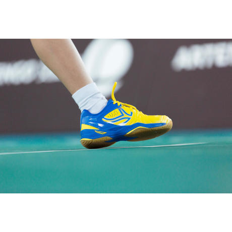 CALÇADO DE BADMINTON CRIANÇA BS800 AMARELO AZUL