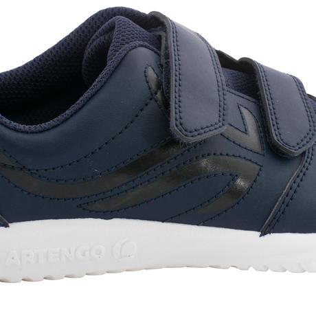 Calçado de ténis polivalente com faixas autoaderentes, de fácil manutenção. Preço económico com sola resistente que não deixa marcas. Ideal para as atividades desportivas ocasionais das crianças.