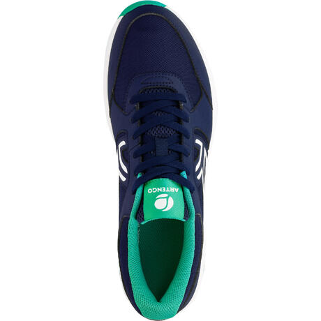 Calçado de ténis para o jogador principiante, proporciona conforto máximo graças à parte superior em PU sintético maleável e malha de rede, e resistência em todos os tipos de piso graças à sua sola.