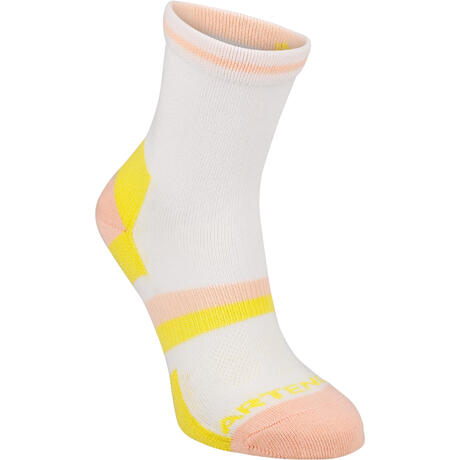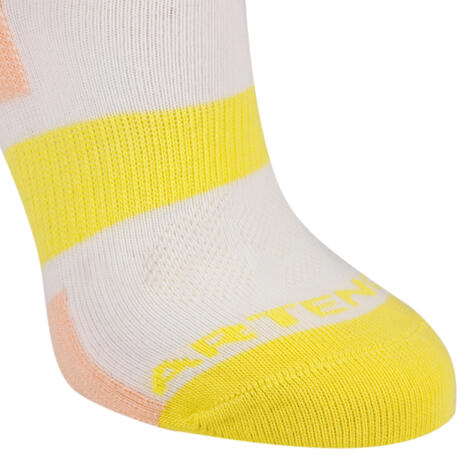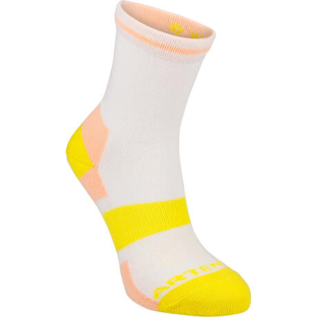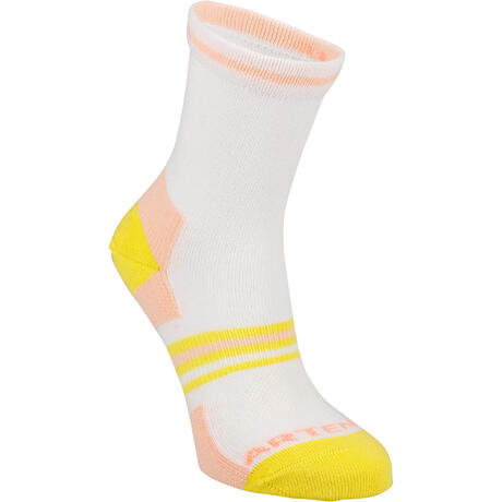 Estas meias maioritariamente de algodão garantem suporte, resistência e conforto. Permitem iniciar-se no ténis mas podem usar-se noutros desportos de raquetes. Vendidas em conjuntos de 3 pares.