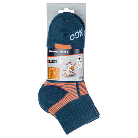MEIAS CANO MÉDIO-ALTO DESPORTOS DE RAQUETE ADULTO RS 560 CINZA/LARANJA (3 PARES)