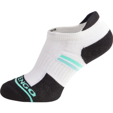 Meias de desporto com malha turca para proporcionar mais conforto e absorção da transpiração. Zona de arejamento na parte superior. Aperto a meio do pé para melhor apoio. Vendidas em conjuntos de 3