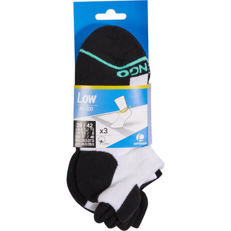 MEIAS CURTAS TÉNIS ADULTO RS 500 PRETO VERDE (3 PARES)
