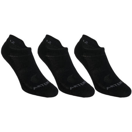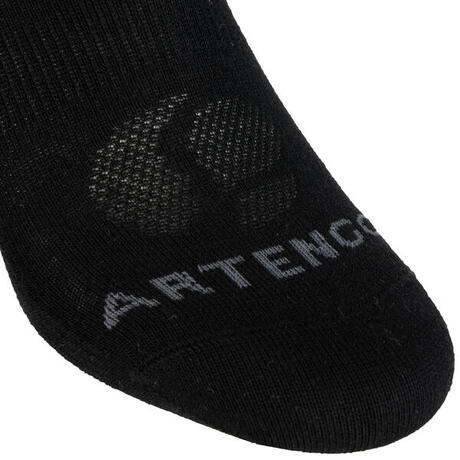Estas meias maioritariamente de algodão garantem suporte, resistência e conforto. Permitem iniciar-se no ténis mas podem usar-se noutros desportos de raquetes. Vendidas em conjuntos de 3 pares.
