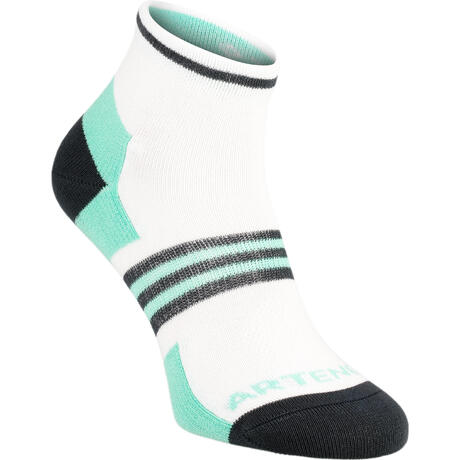 Estas meias maioritariamente de algodão garantem suporte, resistência e conforto. Permitem iniciar-se no ténis mas podem usar-se noutros desportos de raquetes. Vendidas em conjuntos de 3 pares.