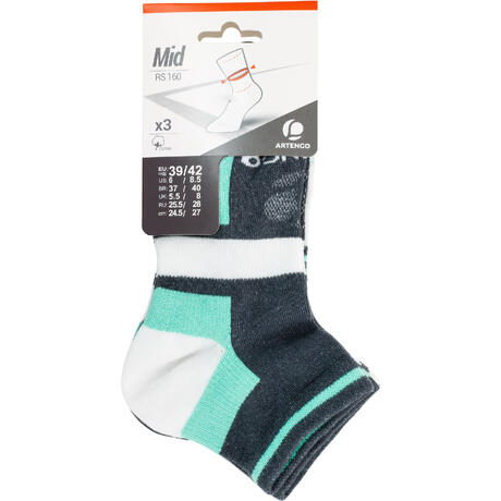 MEIAS DE DESPORTO CANO MÉDIO-ALTO ADULTO RS 160 CINZENTO VERDE (3 PARES)