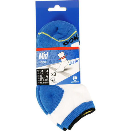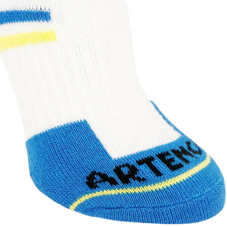 MEIAS DE DESPORTO CRIANÇA RS 500 BRANCO AZUL CANO MÉDIO-ALTO (3 PARES)