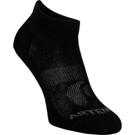 Estas meias maioritariamente de algodão garantem suporte, resistência e conforto. Permitem iniciar-se no ténis mas podem usar-se noutros desportos de raquetes. Vendidas em conjuntos de 3 pares.