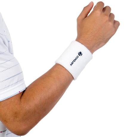 Este punho de ténis absorve o suor do rosto. Prático, interrompe o suor que escorre pelo braço para proporcionar uma melhor preensão da raquete.