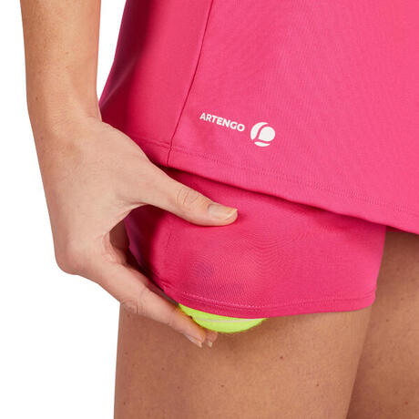 Clássica e confortável, esta saia combina-se com o polo Essentiel, a camisola de alças Soft e a t-shirt Soft. O shorty integrado proporciona apoio e permite levar bolas em jogo.