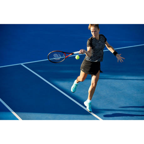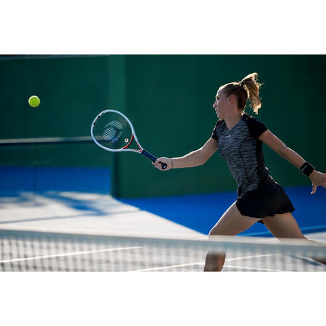 T-SHIRT DE TÉNIS MULHER SOFT 500 CINZA E PRETO